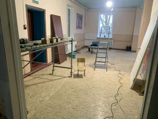 На данный момент ведутся работы по ремонту полов, устройству подвесного потолка, перегородок, облицовки стен стеновыми панелями, демонтаж и установка новых дверей, ремонт электрики, установка новых светильников и выключателей.