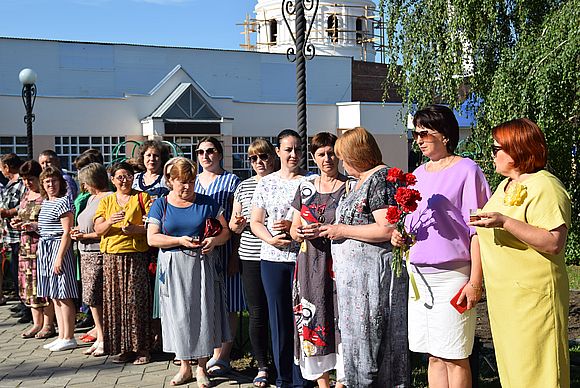 Сотрудники Центра социального обслуживания населения Романовского района приняли участие в траурном митинге, посвященном Дню памяти и скорби- возложили цветы и зажжённые свечи к Вечному огню у мемориала "Погибшим воинам».