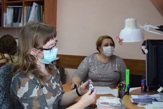 В учреждении соблюдается масочный режим, контроль температуры тела работников в начале и в течении рабочего дня, а также обработка рук кожными антисептиками и дезинфицирующими салфетками.