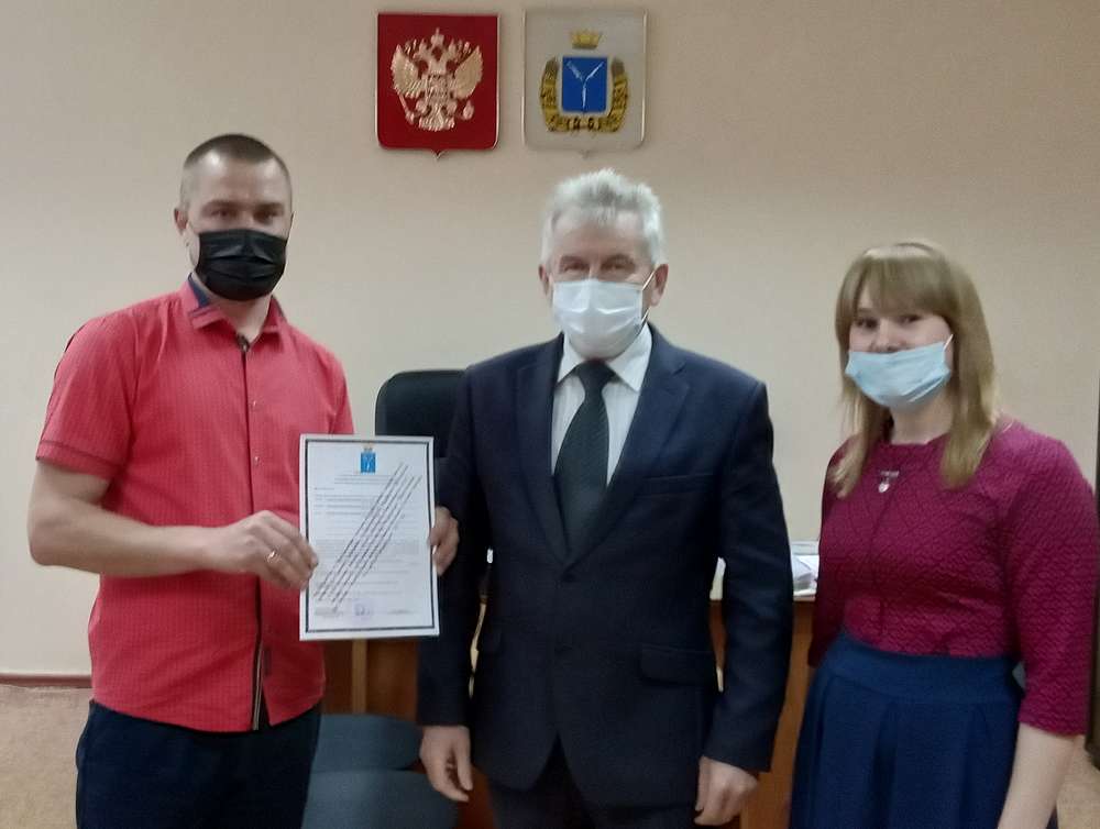 Глава Романовского муниципального района Алексей Щербаков вручил Свидетельство о праве на получение социальной выплаты на приобретение жилого помещения или создание объекта индивидуального жилищного строительства семье Жарковых Андрея Михайловича и Ирины Николаевны.