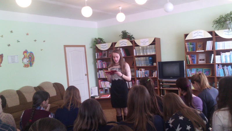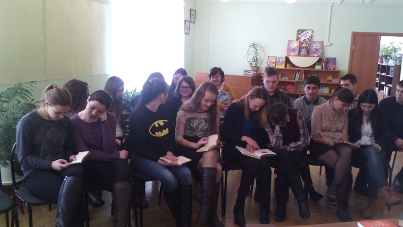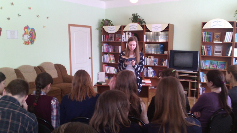 Сотрудники Детской библиотекивыбрали темой этого Дня прочтение саратовского писателя – юбиляра года Н. Е. Палькина. Всего в акции приняло 29 человек. В начале мероприятия зав. отделом обслуживания Пакусина Е. Н. рассказала нашим читателям, учащимся 10 «А» класса РСОШ о биографии и интересных фактах из жизни писателя, о его заслугах перед Отечеством. Интересен тот факт, что для многих читателей жизнь и писательская деятельность Палькина стала настоящим открытием.В исполнении заведующей Детской библиотекойРутц О. В.проникновенно прозвучали стихи Н.Е. Палькина «О, поле русское», «Мать», «Березка», «У моей России очи голубые», «За что люблю я Родину свою», «По Мамаеву кургану», «Последнее письмо».В конце участники акции познакомились с книгами Н. Палькина, прочитав понравившееся произведение вслух.