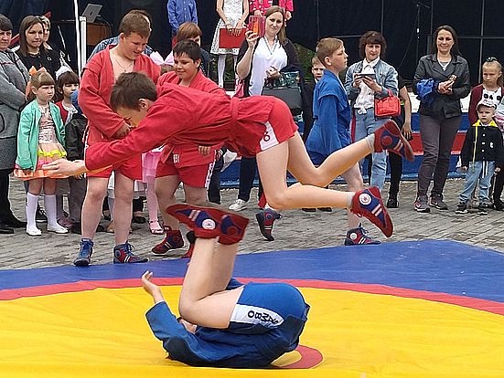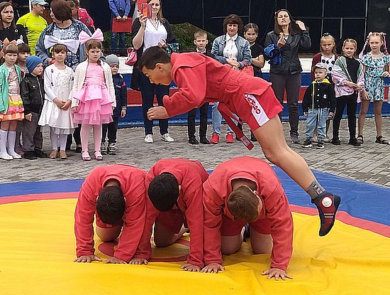 Самбисты в рамках показательных выступлений продемонстрировали элементы акробатики, броски, возможности применения приемов в жизненных ситуациях и в соревновательных схватках. Зрители были увлечены и с большим интересом следили за происходящим. Поддерживали, переживали и очень радовались, когда ребята выполняли сложные элементы акробатики и головокружительные броски, подсечки, захваты и другие эффектные приемы. Закончились показательные выступления борцов под продолжительные аплодисменты и восхищение зрителей.