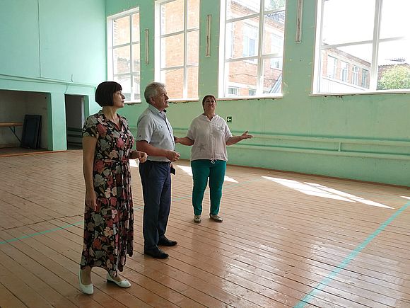 После Алексей Щербаков и Елена Федюнина посетили МОУ «Краснолиманская ООШ». Директор школы Наталия Масюкова рассказала о ремонте спортивного зала - помещение ремонтируется в рамках федерального проекта «Успех каждого ребенка», входящего в состав национального проекта «Образование». В спортивном зале рабочие поменяли все окна на пластиковые, планируется провести косметический ремонт зала и полный ремонт пола.