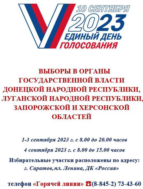 ВНИМАНИЮ ИЗБИРАТЕЛЕЙ ДНР, ЛНР, ЗАПОРОЖСКОЙ И ХЕРСОНСКОЙ ОБЛАСТЕЙ, ПРОЖИВАЮЩИХ ИЛИ ВРЕМЕННО ПРЕБЫВАЮЩИХ НА ТЕРРИТОРИИ САРАТОВСКОЙ ОБЛАСТИ!