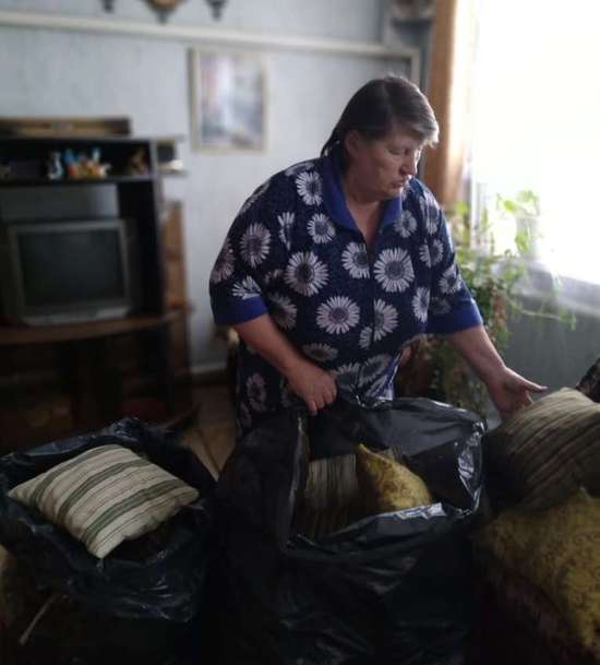 Материал для подушек доставляет волонтер - фельдшер местного ФАПа Невзорова Лидия Алексеевна. Сергей Александрович режет поролон, а Татьяна Владимировна набивает и шьет подушки, которые потом передаются волонтерам и доставляются гуманитарными грузами в зону СВО, а там уже распределяются по госпиталям.