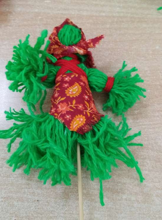 На данном мастер-классе ведущий – Валерия Быкова познакомила всех участников с традициями изготовления куклы. Она поделилась своим опытом: пошагово рассказала и показала, как с помощью цветной пряжи, деревянной палочки, ниток и лоскутков ткани можно создать оберег на проводы зимы и счастливый год – куклу Масленицу.