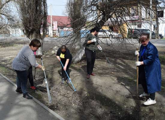 Участники убрали территорию от сухого мусора, побелили деревья и бордюры, привели в порядок клумбы.