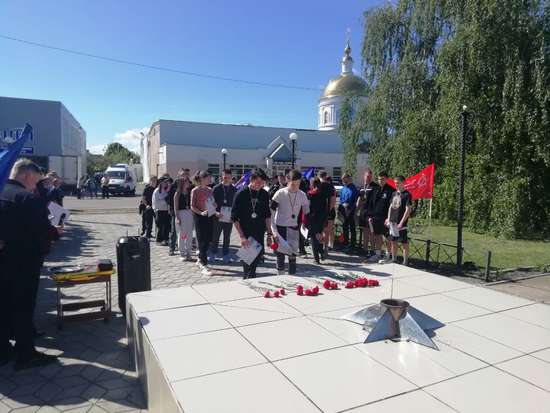 После награждения победителей состоялся митинг, посвященный 79-ой годовщине Победы в Великой Отечественной войне. Учащиеся почтили память героев минутой молчания и возложили цветы к памятнику воинам, погибшим в годы Великой Отечественной войны 1941-1945 годов.