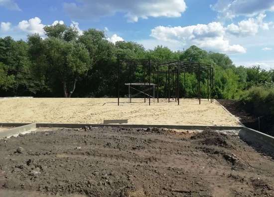 На данный момент ведутся подготовительные работы для укладки асфальта на подъездной дороги и парковки автомобилей, установлена пергола (металлическая конструкция - навес, предназначающийся для защиты от солнца), габионы (укрепляющая конструкция из камня, для защиты речных берегов от размывания), оборудуется место отдыха, завезен песок для пляжной зоны.