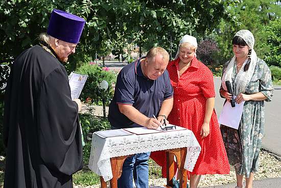 На территории храма Рождества Христова в день памяти святых благоверных князей Петра и Февронии Муромских прошел праздник «Ромашки для любимых», ежегодный, ожидаемый и очень любимый всеми жителями нашего района.С праздником всех поздравил благочинный Романовского округа иерей Павел Денисов, начальник отдела ЗАГС по Романовскому району О.А.Ракшина. И затем в рамках праздника прошла памятная регистрация юбилейных пар. Отрадно, что на это мероприятие приходят с детьми и внуками, большими своими семьями и делятся радостью.15 пар было торжественно зарегистрировано в рамках праздника, в этот год они отметили 5-летие, 15, 25, 20-летие и 5 пар отметили 50-летний юбилей.