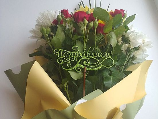 Глава Романовского муниципального района А.И. Щербаков поздравил с 50-летним юбилеем совместной жизни супругов Атапиных, вручил подарок и букет цветов.