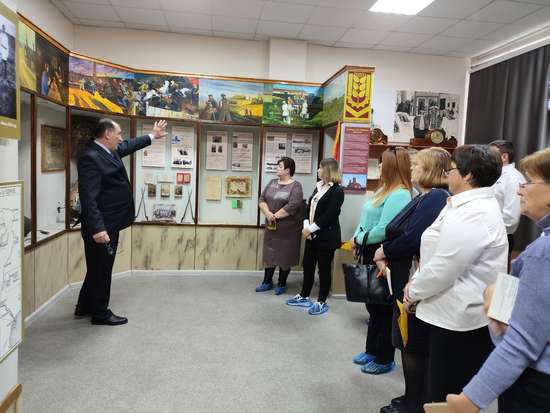 Затем участники погрузились в атмосферу Подгорненского музея с советником директора по воспитанию и взаимодействию с детскими общественными объединениями филиала МОУ Романовская СОШ им. И. В. Серещенко в с. Подгорное - Андреем Викторовичем Чиченковым, который провел экскурсию и рассказал о значимых экспонатах различных эпох.