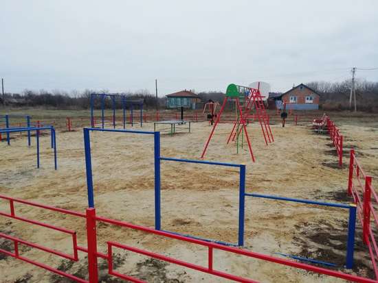 В рамках данного проекта установлены различные силовые тренажеры, комплекс тренажерный многофункциональный, рукоход, баскетбольный щит, стол для настольного тенниса и многое другое, для безопасности площадка огорожена, подведено освещение, установлены две лавочки и урна.