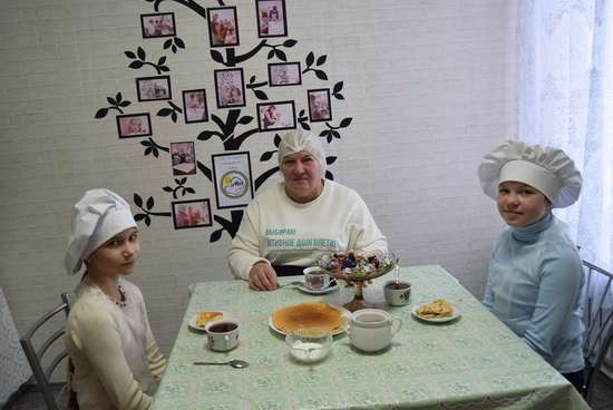 В «Учебной кухне» Комплексного центра социального обслуживания населения Романовского района состоялся мастер-класс по приготовлению блинов, который объединил два поколения: «серебряного» волонтера – Надежду Сердобинцеву и несовершеннолетних получателей соцуслуг.