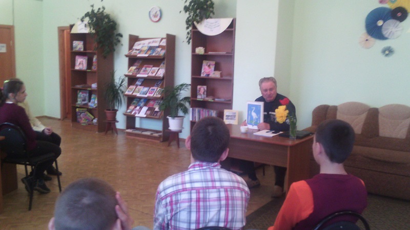 Всем известно, что наш земляк является автором герба Романовскогомуниципального района.Вечер начался с рассказа об историиего зарождения. Далее Иван Тимофеевич рассказал о своем детстве и юности, неразрывно связанных с селом, об этапах творчества, читал стихотворения о Родине, природе, друзьях, семье, особенно тронуло участников встречи стихотворение, посвященное маме, «Лисичкин хлеб».Он познакомил детей с новой книгой «Пером и кистью»,которую преподнес в дар библиотеке. Беседуя с детьми, он призывал их любить и беречь свой край, знать и помнить подвиг предков, видеть прекрасное, творить добро и обязательно прилежноучиться. Общение получилось дружеским и позитивным.