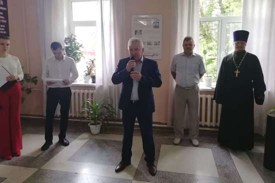 Почетное право открыть памятные стенды было предоставлено главному врачу Александру Николаевичу Горбунову и благочинному округа иерею Павлу Денисову.