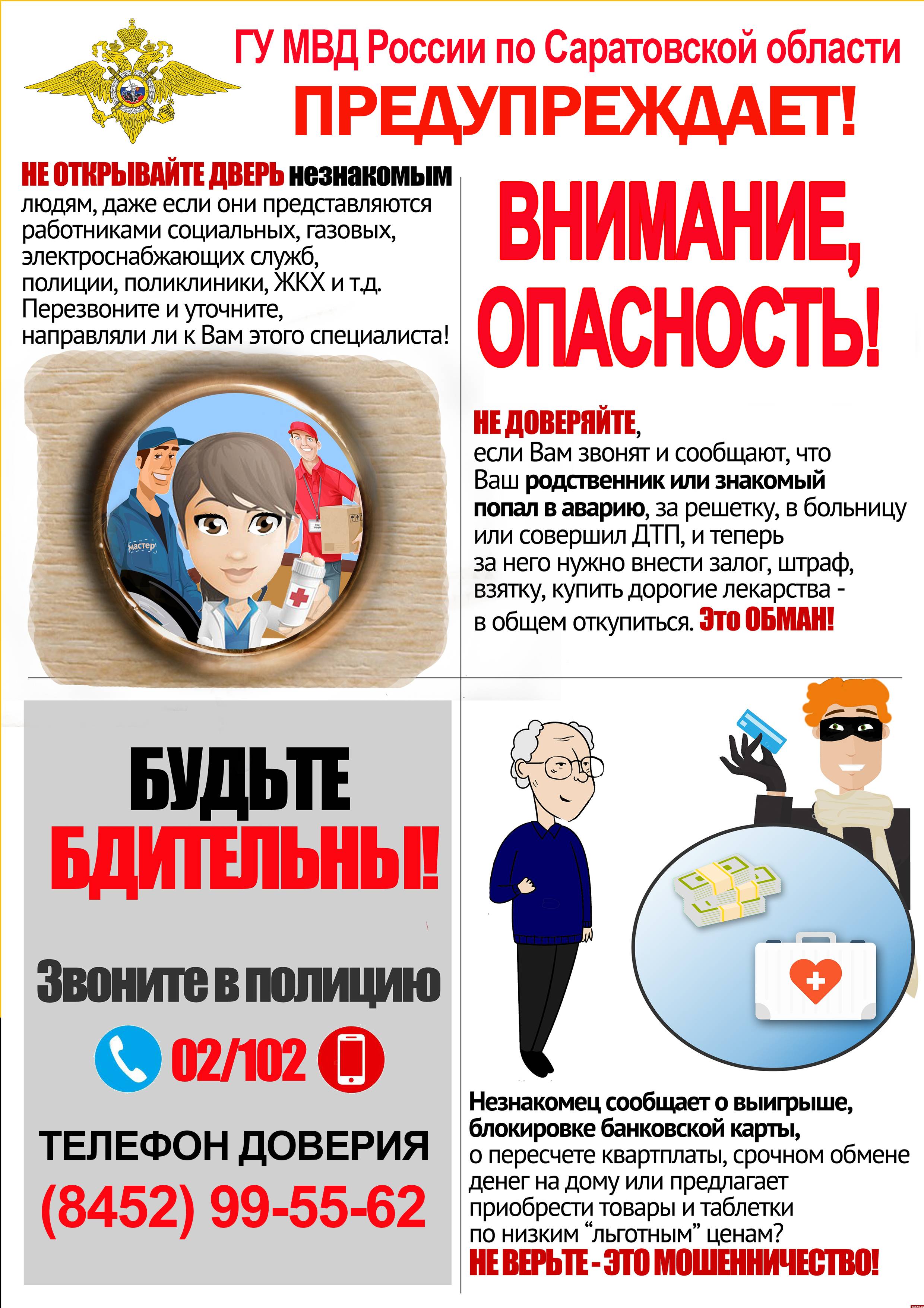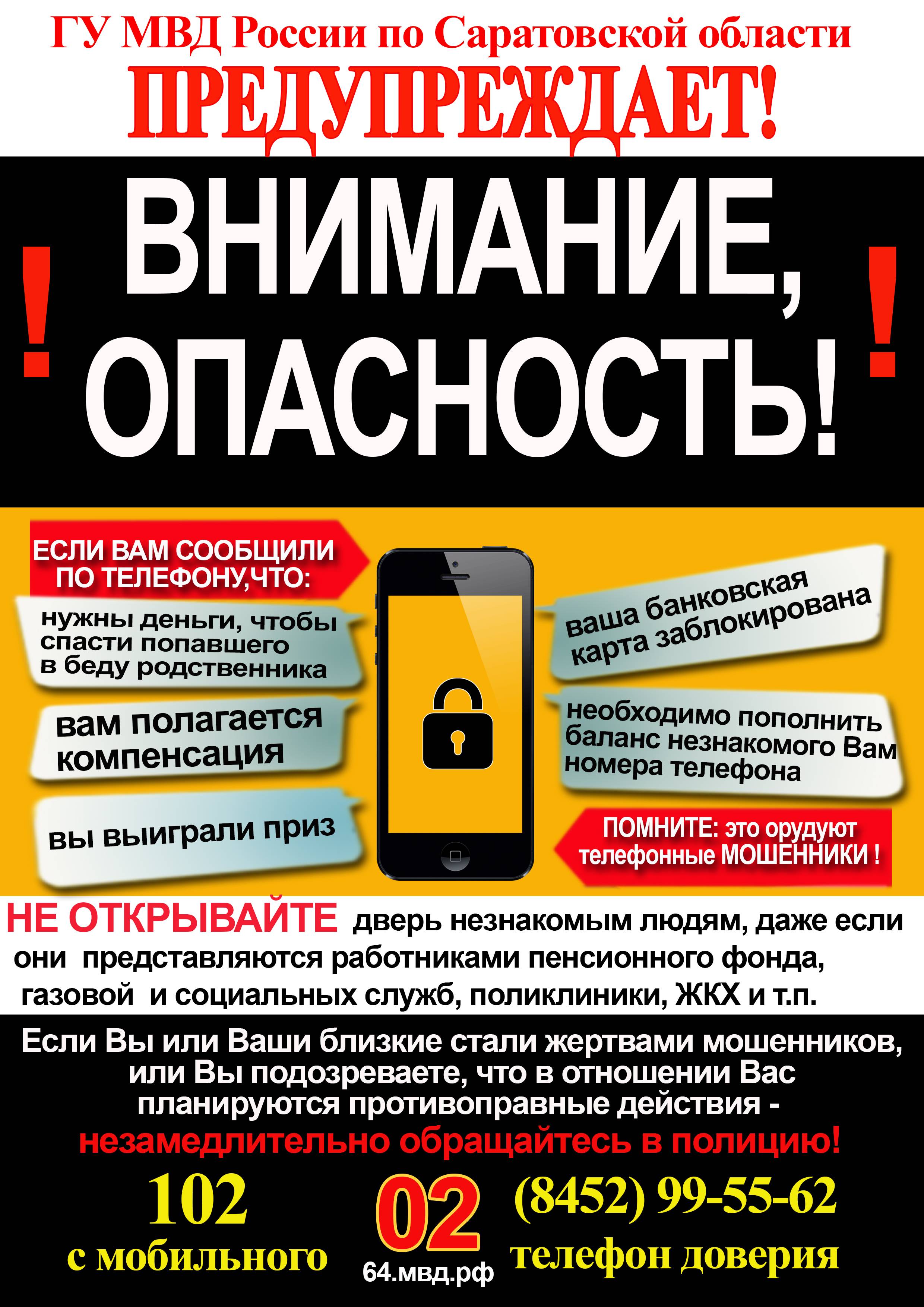 ГУ МВД России по Саратовской области предупреждает! Вниманиеопасность!