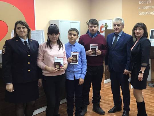 В торжественной обстановке, первые в своей жизни паспорта получили трое мальчишек и девчонок, которым исполнилось 14 лет.