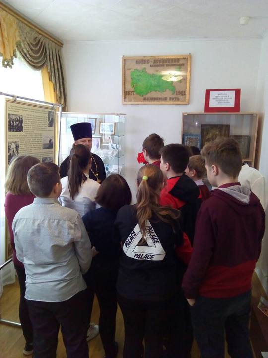 Затем настоятель Храма Рождества Христова поведал ребятам о православных святынях Романовского края и провел экскурсию в музее святителя Луки, архиепископа Симферопольского и Крымского (В.Ф. Войно - Ясенецкий). В заключении мероприятия библиотекарь провела обзор детской православной литературы «Книжный мир Православия».