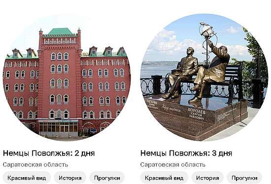 На платформе RUSSPASS также доступны 2-хдневный и 3-хдневный туры по маршурту «Немцы Поволжья». Тур предполагает погружение в прошлое и настоящее российской глубинки, ее богатейшую культуру и трагические страницы истории уникального этноса переселенцев из Европы - немцев Поволжья.