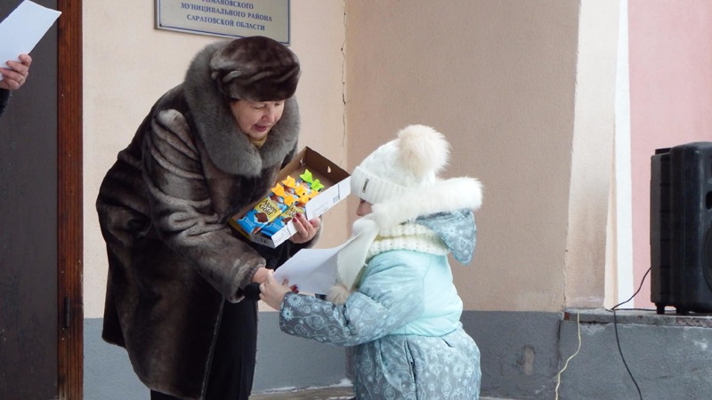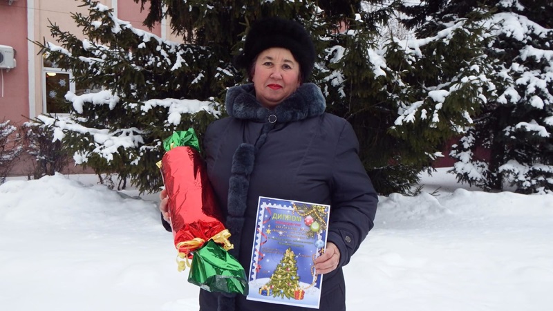 На празднике были вручены дипломы и памятные подарки победителям районного конкурса елочных игрушек "Новогодний серпантин".