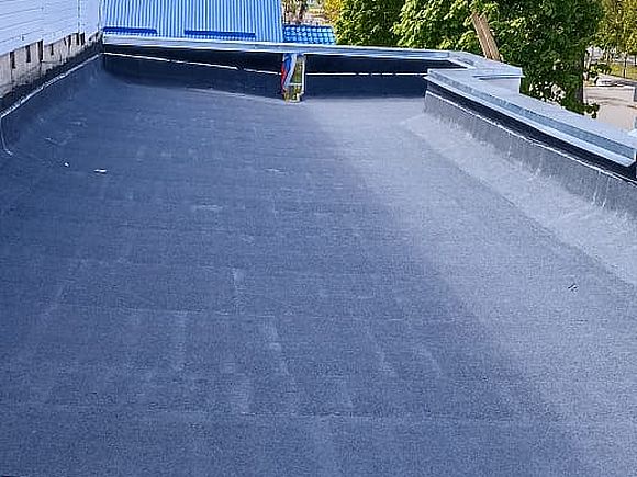 Подрядной организацией ООО «РЕМСТРОЙДЕТАЛЬ» проведены работы по ремонту скатной крыши, а именно: провели замену обрешетки, пропитали огнебиозащитным составом, утеплили покрытие плитами из минеральной ваты, установили пароизоляционную пленку, смонтировали кровлю из профильного листа. По ремонту мягкой кровли - проведена стяжка цементно –песчаной смесью, укладка нижнего и верхнего слоя линокрома.