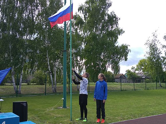После чего хореографическую композицию исполнил коллектив эстрадного танца «Фиеста» (руководитель Наталья Кондратьева). Затем для поднятия флага были приглашены спортсмены из Романовской ДЮСШ Соколянская Алиса и Каныгин Вадим, прозвучал гимн РФ и стартовали первые забеги на 60 метров.