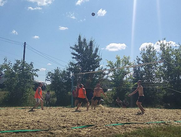 После торжественного открытия начался турнир по пляжному волейболу среди мужчин, в котором участвовали команды из р.п. Романовка и с. Усть-Щербедино.