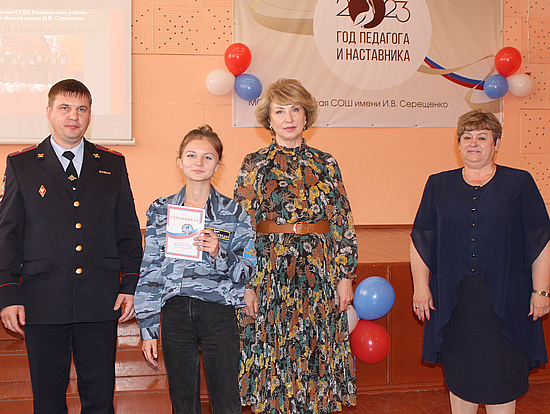В школе районного поселка Романовка Саратовской области состоялось торжественное мероприятие. Выпускники 9-х и 11-х классов, закончившие обучение по Программе внеурочной деятельности «Юный друг полиции», получили сертификаты, подтверждающие личное участие в общественном движении правоохранительной направленности.