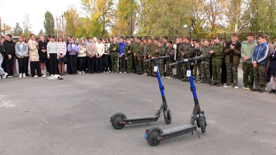 Провели открытый урок для школьников инспектор по пропаганде безопасности дорожного движения отдела ГИБДД МО МВД России «Балашовский» Саратовской области капитан полиции Олег Командин, представители администрации Балашовского района и организации по прокату электросамокатов.