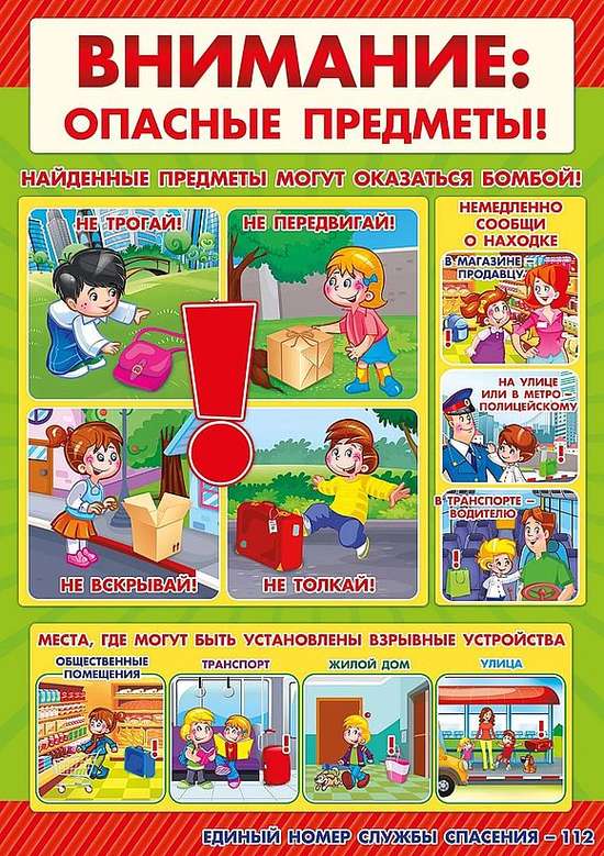 В целях вашей безопасности, напоминаем вам правила поведения при обнаружении взрывоопасных предметов, самодельных взрывных устройств или предмета, похожего на взрывное устройство:
