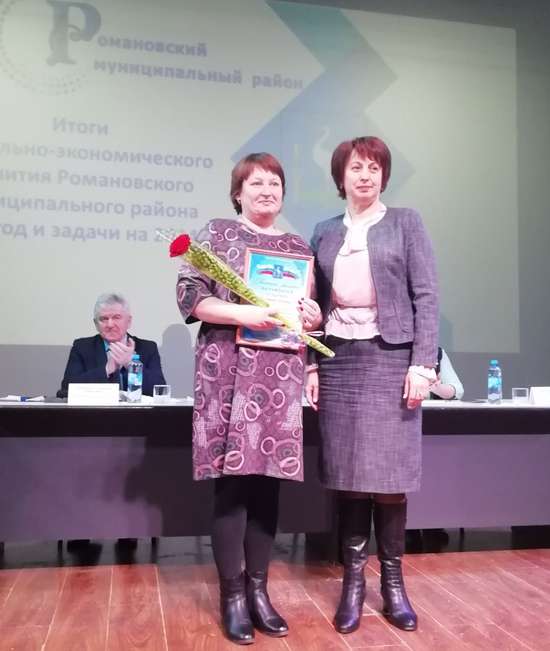 Заместитель Председателя Муниципального Собрания Романовского муниципального района Хохлова С.П. вручила Почетную грамоту Председателя Муниципального Собрания Романовского МР: