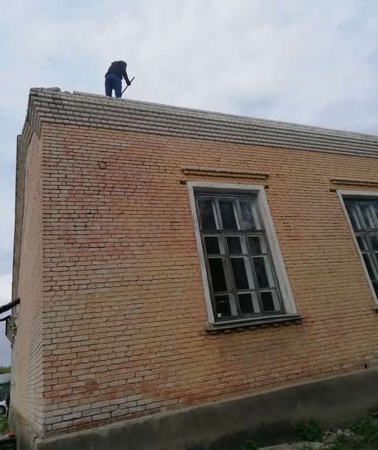 На данный момент рабочими производятся работы по разборке кровельных покрытий, деревянных элементов конструкций крыши, и начаты работы по ремонту кровли.