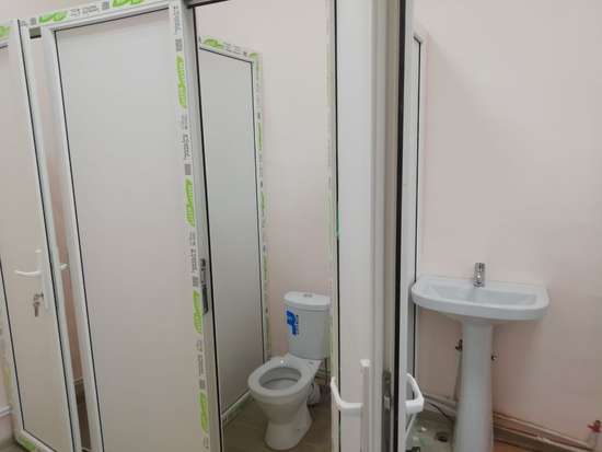 На данный момент полностью перекрыта крыша здания, установлены новые оконные и дверные блоки, настелены полы в коридоре, проведена канализация. Ведутся сантехнические работы, внутренний ремонт помещения (выравнивание и покраска стен и потолка), установлены новые умывальники и унитазы.