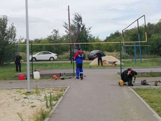На данный момент сотрудниками администрации, отдела культуры и кино, управления образования, КЦСОН ведутся работы по уборке данной территории – покос травы, прополка клумбы, подсыпка песка.