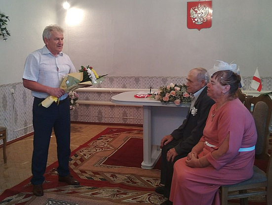 Начальник отдела ЗАГС по Романовскому району О.А. Ракшина поздравила юбиляров и вручила юбилейное свидетельство о заключении брака.