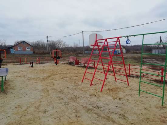 В рамках данного проекта установлены различные силовые тренажеры, комплекс тренажерный многофункциональный, рукоход, баскетбольный щит, стол для настольного тенниса и многое другое, для безопасности площадка огорожена, подведено освещение, установлены две лавочки и урна.