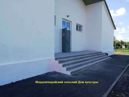3. По Федеральной программе «Культура Малой Родины» проведен ремонт здания Мордовокарайского сельского Дома культуры «Мир». Полностью заменена кровля здания, установлены новые оконные блоки, обновлен и покрашен фасад здания, сделана новая входная группа (ступеньки), в одной из комнат настелены новые полы, установлена система водоснабжения и канализация.