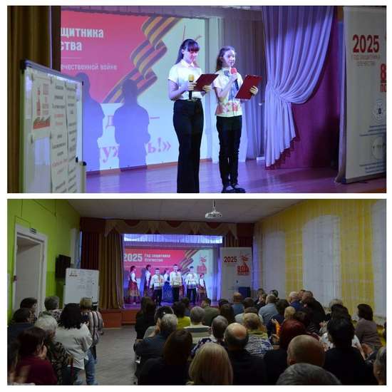 «В целях сохранения исторической памяти, в ознаменование 80-летия Победы в Великой Отечественной войне 1941-1945 годов, в благодарность ветеранам и признавая подвиг участников специальной военной операции, Указом Президента Российской Федерации Владимира Владимировича Путина 2025 год объявлен Годом защитника Отечества», - такими словами открыли мероприятие ведущие Любовенко Марина и Немкина Богдана, обучающиеся в кружке «Школьная агитбригада».