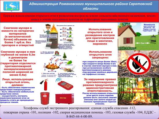 Приложением 4 к Правилам противопожарного режима в Российской Федерации, утвержденными постановлением Правительства РФ от 16.09.2020 г. № 1479 (далее – ППР в РФ) определен порядок использования открытого огня и разведения костров на землях сельскохозяйственного назначения, землях запаса и землях населенных пунктов на территориях населенных пунктов.