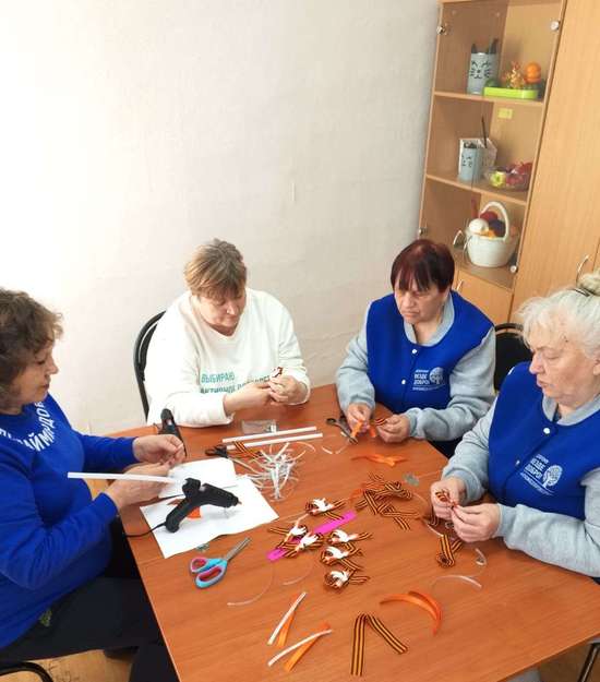 В Центре социального обслуживания населения Романовского района «серебряные» волонтеры провели мастер-класс по изготовлению нагрудных значков с использованием Георгиевской ленты.