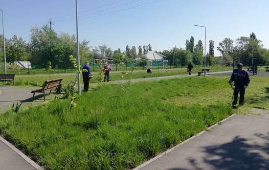 На данный момент сотрудниками администрации, отдела культуры и кино, управления образования, КЦСОН, УСПН, ЖКХ ведутся работы по уборке данной территории – проводится покос травы, уборка мусора, пропалываются клумбы, подметаются дорожки.