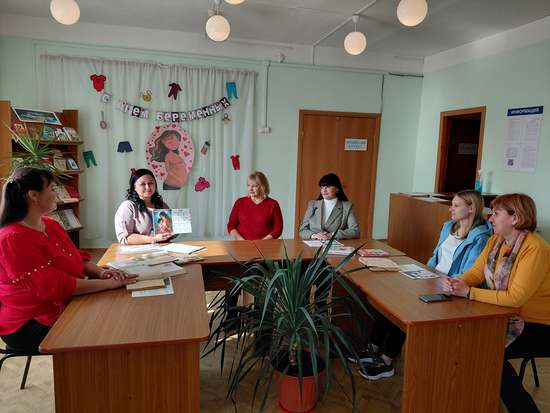 Специалист Комплексного центра социального обслуживания населения Романовского района Чуприкова Наталия Михайловна на базе МУК «РЦ библиотечная система» РМР Саратовской области детская библиотека совместно с заведующей отделом обслуживания детской библиотекой Пакусиной Еленой Николаевной и начальником отдела ЗАГС по Романовскому Ракшиной Ольгой Александровной провела мероприятие, посвященное Всемирному Дню беременных «Биение двух сердец».