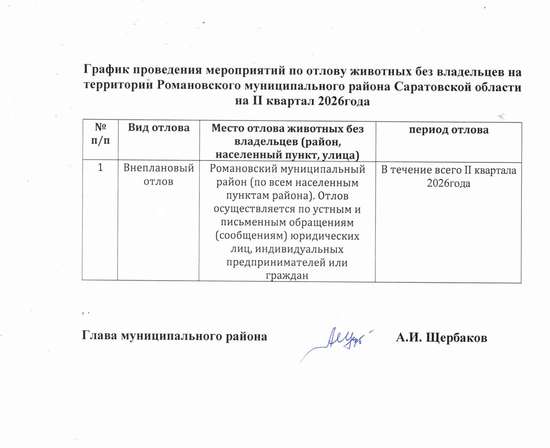 График проведения мероприятий по отлову животных без владельцев на II квартал.