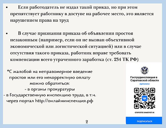 Призываем вас к исполнению действующего законодательства Российской Федерации в части исполнения норм и требований трудового права. За нарушение или неисполнение действующих норм трудового законодательства предусмотрена административная ответственность. Процесс по легализации трудовых отношений способствует улучшению труда и выполнению социальных гарантий для работников. Работа в данном направлении будет продолжена.